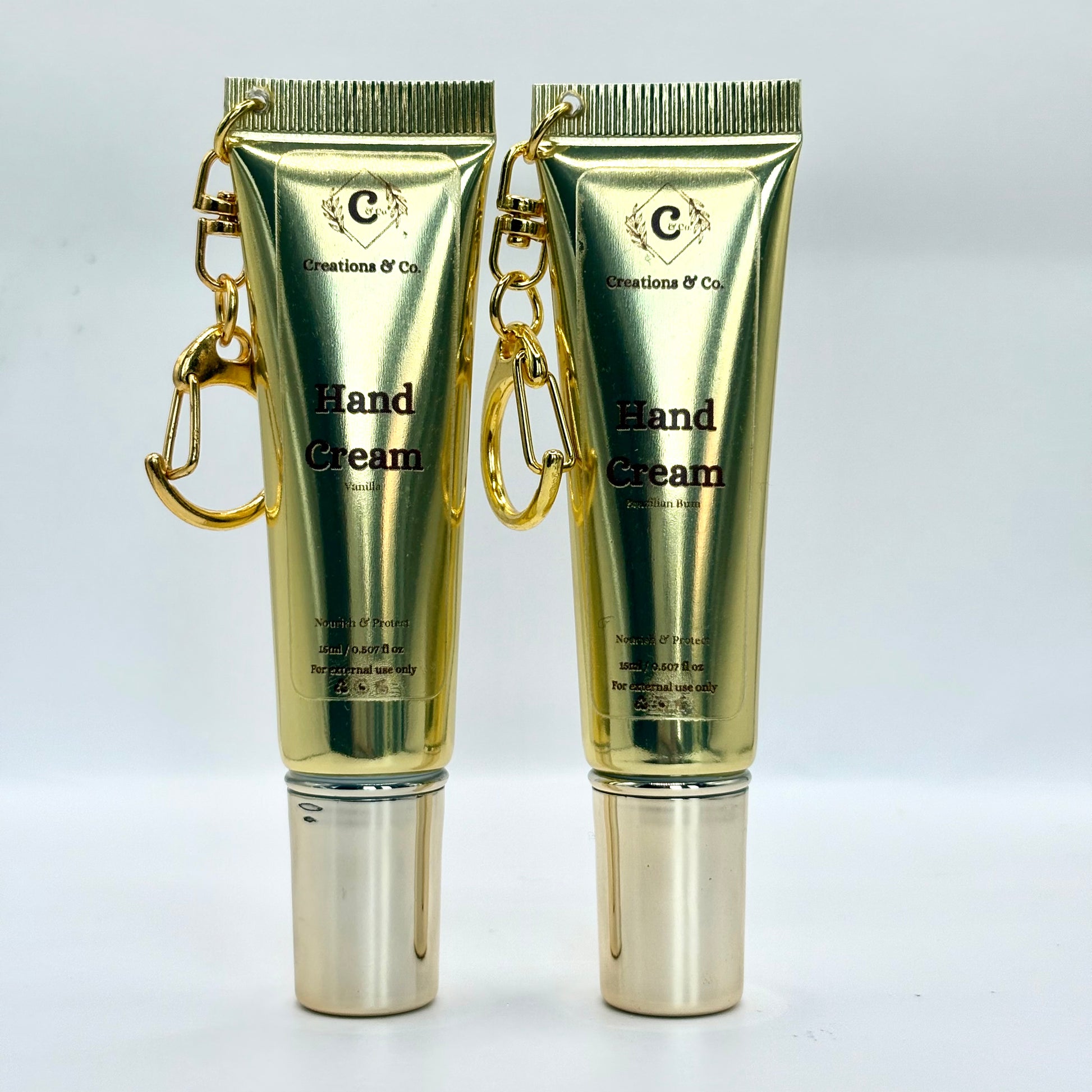 Available in two luxurious scents Vanilla and Brazilian Bum, each with a rich, skin-loving formula designed to lock in moisture and leave your hands feeling silky smooth. These creams absorb quickly, without residue, and the stylish keychain packaging means you can clip them onto your keys, bag, or pouch without worry.